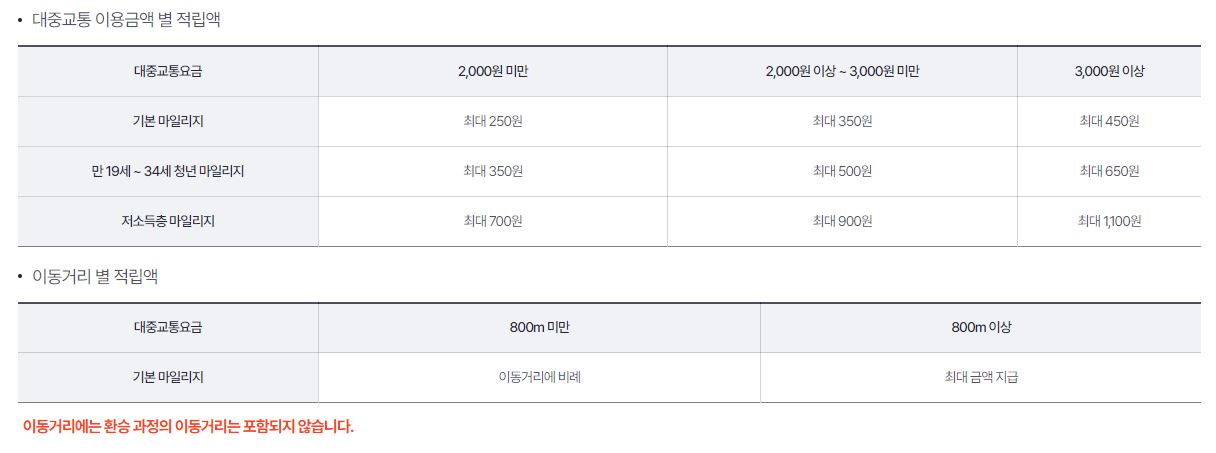 그리고 이동거리 별 적립액도 살펴볼 수 있습니다.