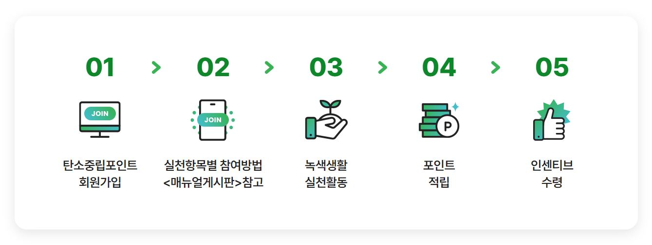 회원가입을 완료했다면, 아래에 방법대로 탄소 저감을 위한 실천을 통해서 포인트를 쌓으면 되는데요!