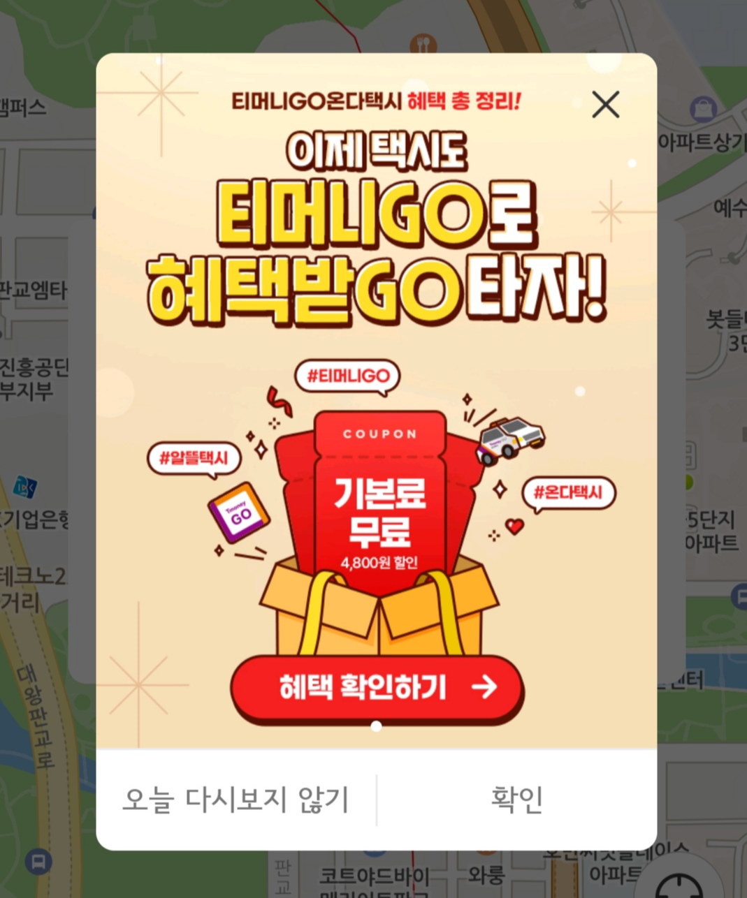 오늘은 티머니GO 온다택시를 기본요금을 0원으로 이용하는 방법에 대해서 알아보겠습니다.